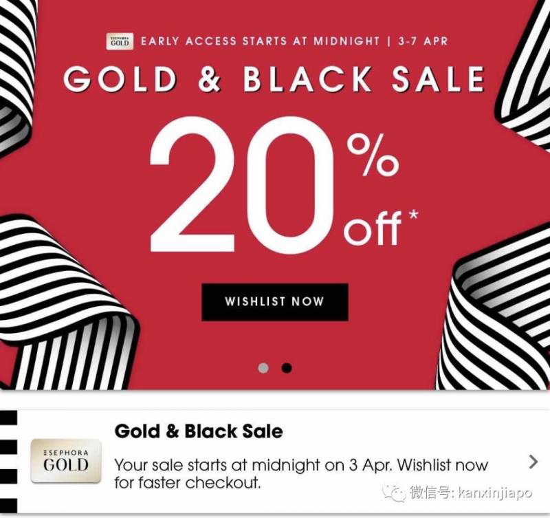 新加坡丝芙兰全场八折又来了!!全岛的丝芙兰门店,以及丝芙兰的官网、app都参与,金卡用户4月3日开始抢购,黑卡则晚一天入场,促销持续到4月7日~