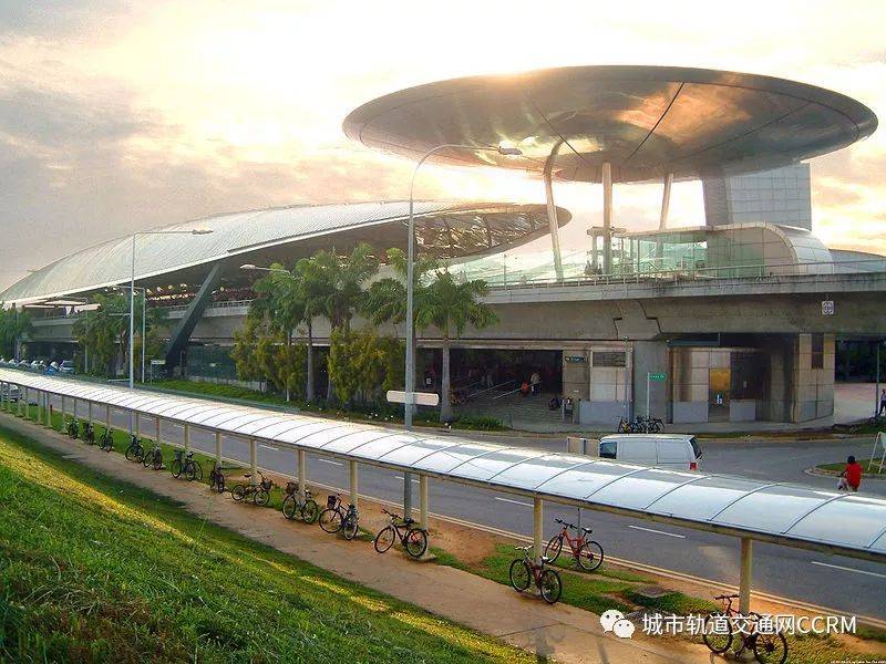 线路的高架设计符合新加坡旅游国家的国情,便于游客沿途欣赏新加坡的自然风光,广阔的地上空间可以成为地铁站美学设计和空间感的保障。其中,博览(expo)地铁站作为乘客出樟宜机场的第1站,可谓是各国游客进入新加坡的门户。直径38 m的大圆盘覆蓋下面的入口大厅和售票大厅。屋顶使用钛板,100年的耐久性,几乎不需要清洁与维修。天花板采用不锈钢,反射乘客与地铁的运动,也反射阳光,最小限度地使用人工照明。博览地铁站现正在申报最佳地铁站设计奖。