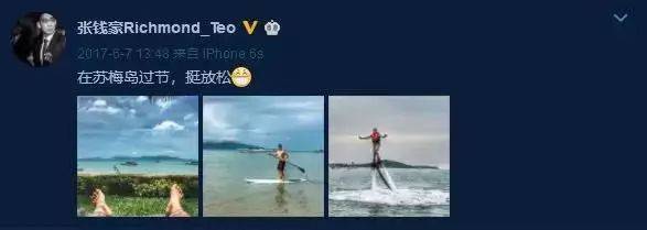 因为张钱豪的Twitter被限制关注,细细品了品张钱豪的微博动态。其中不乏冲浪健身、遛狗、高端聚会及和“朋友”的合影。比如WKO世界冠军……