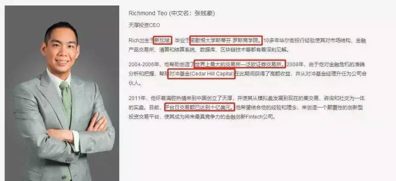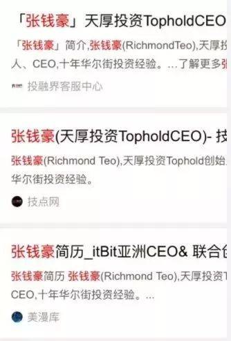 而张钱豪创立的天厚投资其实也是搞区块链交易的。区块链这种东西说起来仁者见仁,智者见智