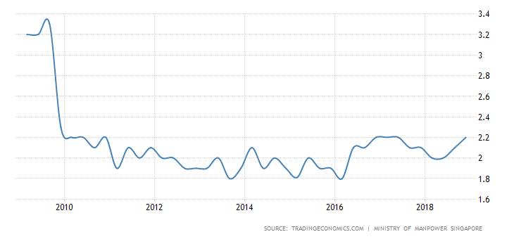 新加坡过去10年的失业率,2010年后一直维持在较低的平稳水平