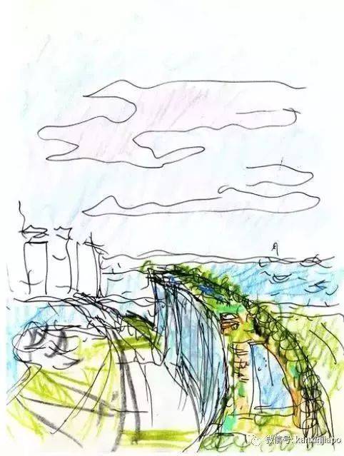 Safdie当年给金沙酒店画的草图,还被吐槽过像小学生画作。