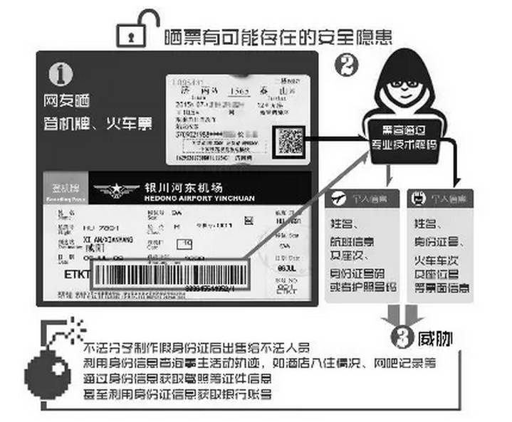有时候大家出门旅游一高兴,就将登机牌和火车票晒在朋友圈里,这种行为很有可能让个人信息被非法分子盗用。