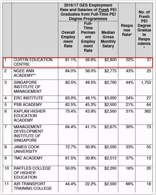 此前CPE最新的新加坡私立大学就业调查报告显示,科廷新加坡的全职就业率最高、月薪中位数最高(2800新币)、总体就业率排名前3(81.1%)!