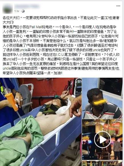 少年打电玩被狂殴的贴文周日晚在社交媒体广传,引起许多网民留言,纷纷讨伐印裔父亲的恶行。