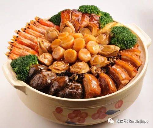 新加坡的华人,保留了中国南方沿海一带的习俗——吃盆菜。盆满钵满的形态,寓意繁荣兴旺;盆菜所用的圆盆,代表团团圆圆。