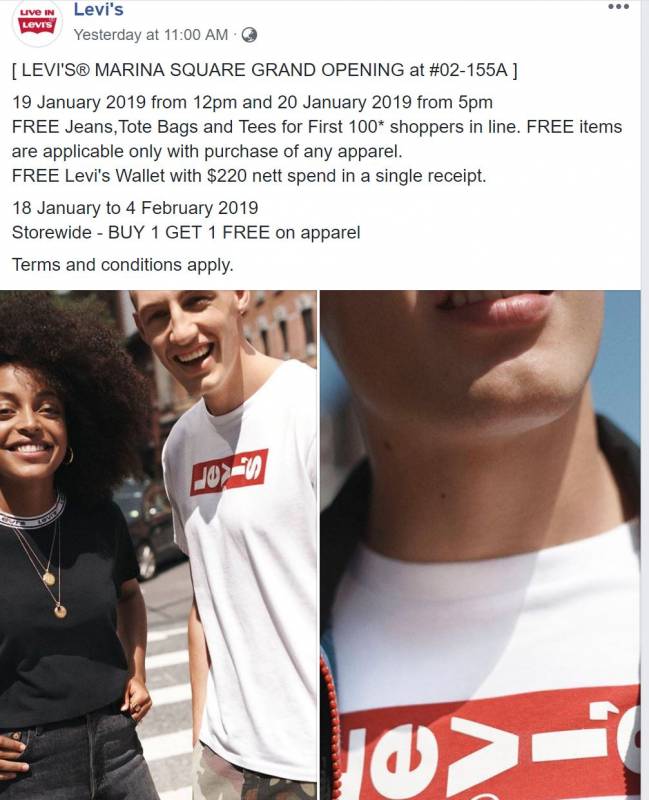 4.Levi’s Marina Square新店开张,免费送牛仔裤、T恤、钱包啦~