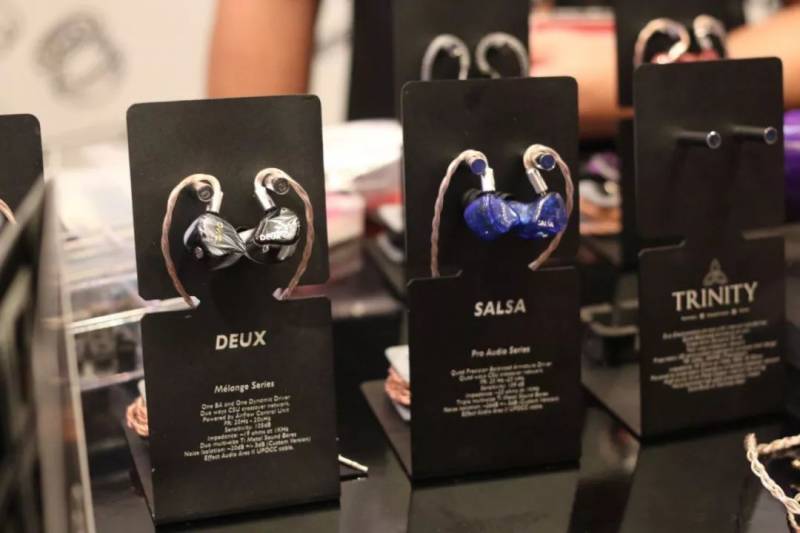 旁边的JOMO Audio,Trinity 最近挺火,整体也是偏向流行的调音,高频比较细腻,柔和,低频的量不算少,但是速度比较快,整体的声音比较干净。配置是1圈4铁2静电。就是需要比较大的电压,我平时用SPKM听歌大概开80-85的音量,Trinity需要开到120。