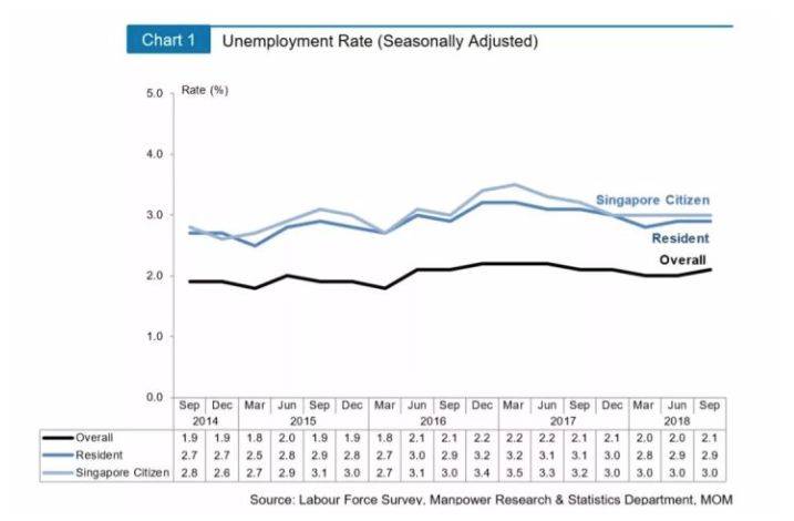第三季度的失业率基本保持平稳(居民失业率约为2.9%,公民失业率约为3.0%),但总体失业率略有上涨,从2.0%上涨到2.1%。