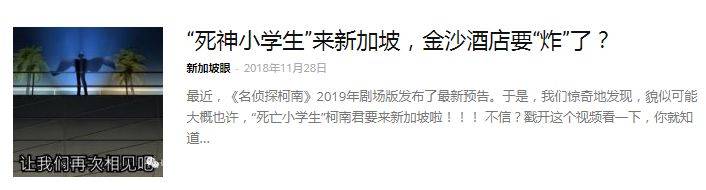 说大事专用开头!超人气日本动漫《名侦探柯南》的新电影(剧场版)定档啦,“死神小学生”重磅来袭,即将在新加坡掀起“腥风血雨”!