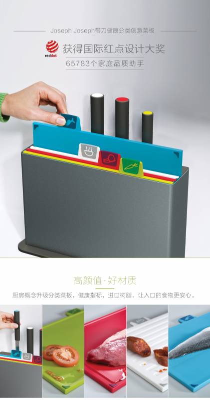 这款分类菜板及炫彩刀具组合套装含有4张独立砧板