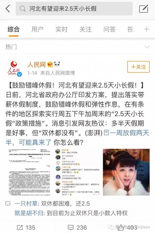 然而在新加坡人还在纠结要不要加班的时候,中国已经热烈地讨论起了2.5天休假制度——周五只要工作半天。