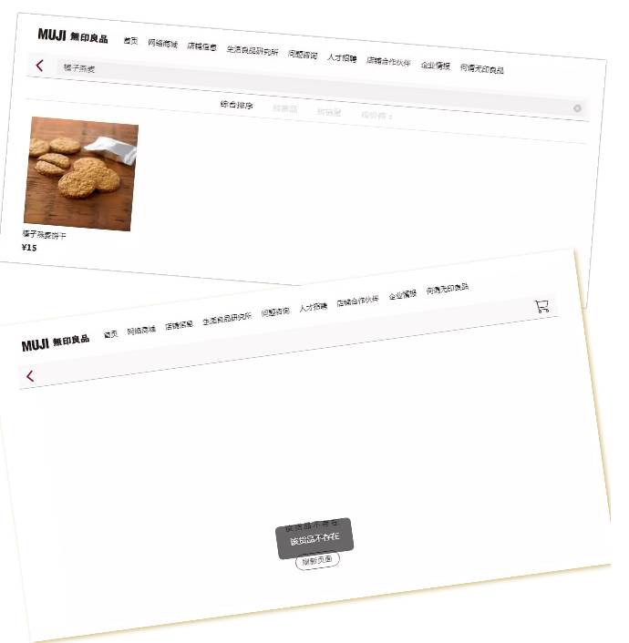 除此之外,无印良品内地官方网站上找到了该报告中同名的榛子燕麦饼干,但官网显示“该货品不存在”。