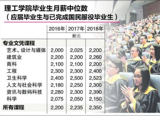 数据显示,新加坡理工学院毕业生的就业率自前年下滑后,去年有所好转,学生在毕业半年后找到工作的比率达89.5%,比2017年高2.2个百分点,毕业生的月薪中位数也增至2350元。