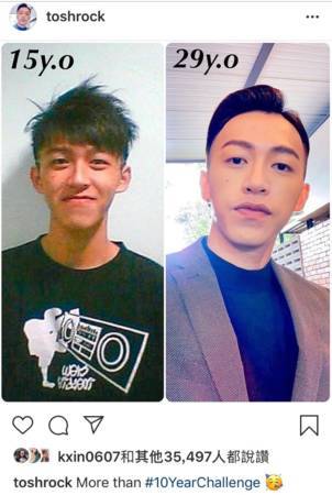 张智扬(Tosh)放了自己15岁的青涩模样,和现在29岁的自己相距甚大。