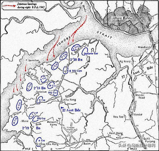 a, 人多力量大?在 1942 年 1 月 31 日,马来亚半岛上所有的同盟国军队全部撤退到了新加坡。早前在柔佛巴鲁(Johor Bahru),同盟国的军队曾数次伏击日军前锋,但仍然无法阻挡日军前进的脚步,工兵便在柔佛长堤上炸开了一个口子,用来拖延地面部队的向前推进。