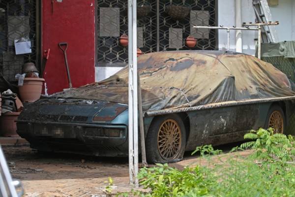 记者前天下午走访这间洋房了解情况,发现前院满地树枝和落叶,里头停有4辆废弃的名车,包括一辆保时捷。保时捷旁边堆满座垫、轮胎等汽车零件。洋房大门紧闭,看似无人居住。