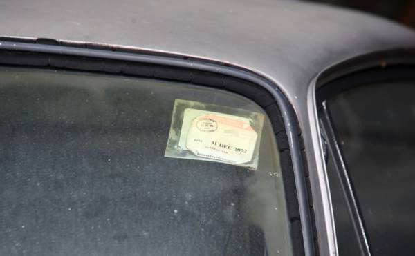 道德路洋房泊了的轿车挡风镜贴著路税单,显示路税早在2002年过期。