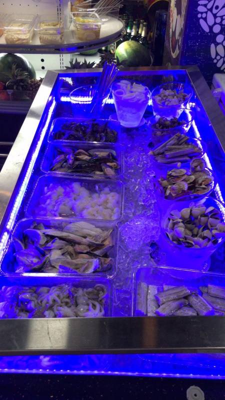 将近20多种海鲜:老虎虾,大螃蟹,扇贝,八爪鱼等等无限量供应您将不悔而来!