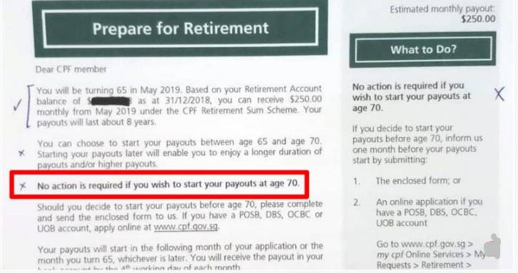 不过,如果他选择推迟领取,就能享有更长的领取期,或者是更高的每月入息。信中也用黑体标出一句话:“如果你想要在70岁开始领取赔付额,你什么都不用做”。