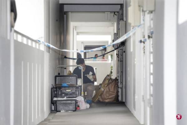 记者在昨早10时许抵达事发组屋时,看见11楼有四个单位仍遭警方封锁,其中包括事发单位。三、四名警员不时进出事发单位,也有两名警员严守在封锁线旁边,确保只有那里的单位住户能出入。
