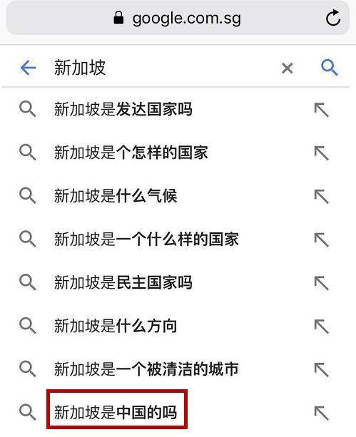 9102年了,还是有人不知道 新加坡到底在哪 打开google输入新加坡 出现的热门搜索:新加坡属于中国哪个省?整个人都绝望了 wuli小红点表示 这么多年了,早已习惯了 一起看看这几年新加坡 因为没存在感受过的 “那些委屈”