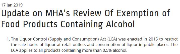 内政部(MHA)昨天发公告宣布放宽酒类管制(供应与饮用)法令,将除了各类酒与含酒饮料以外的其他含酒精食品,排除在现有法令之外。