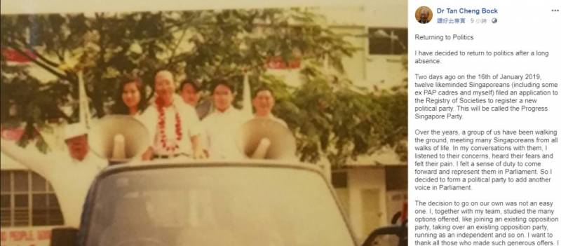 前新加坡总统候选人、人民行动党前议员陈清木医生,于今天(1月18日)早上发表公告称,本月16号,他和11位新加坡人联名向新加坡社团注册局提出注册新政党的申请。目前他们正等待社团注册局的批准,一旦收到批文,他将召开记者招待会。