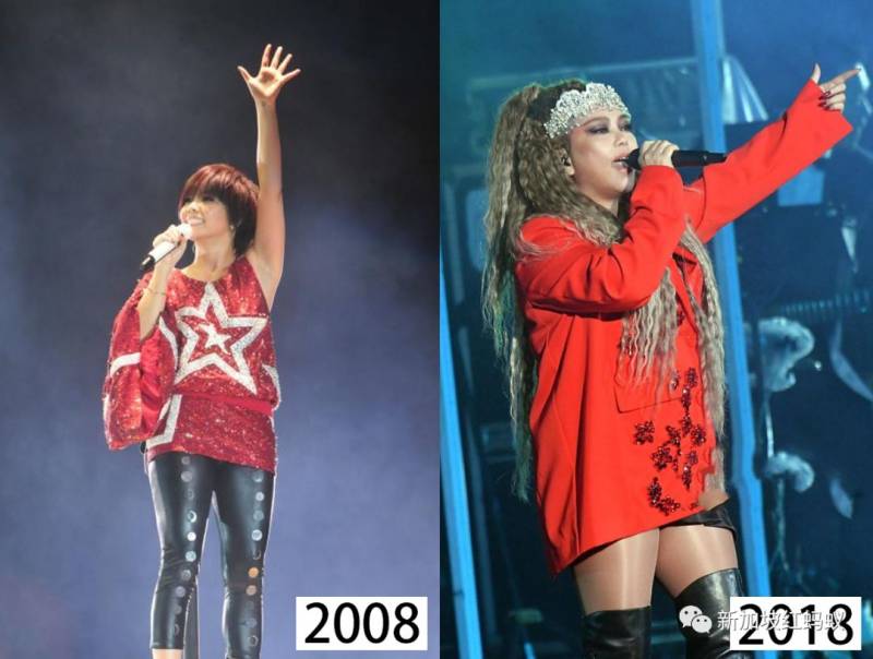 迈入中年后的阿妹,抵不过新陈代谢变慢,结果发福啦。昔日穿着紧身裤的她,显出漂亮腿型;十年后穿着黑色过膝长靴,却硬生生地把大腿肉挤了出来。即便身材走样,岁月还是没带走她天后等级的好歌喉!她去年在台北市跨年夜唱得让现场嗨到最高点,真不愧是实力派歌手。