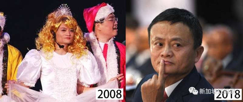 嗯?阿里巴巴集团创始人什么时候变过性了?原来在2008年的阿里年会上,热衷于角色扮演的马云cosplay了白雪公主,一头金色长卷发、一身雪白公主裙,还用兰花指轻轻拈起裙摆。虽然脸上一副生无可恋,但参与年会的员工都被他逗乐了。