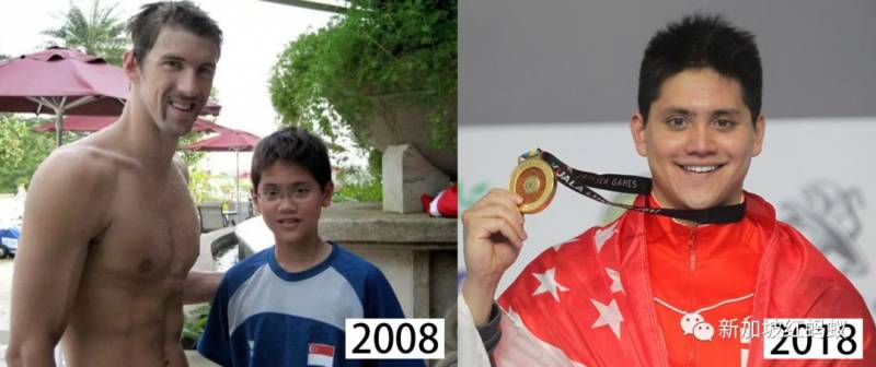 年幼稚气的约瑟林在2008年,与偶像美国游泳名将菲尔普斯 (Michael Phelps)在北京奥运会举行前在本地会面合照。没想到2016年,他就在里约奥运男子100米蝶泳击败菲尔普斯,十年后的他英姿帅气,还成为时尚大牌Hugo Boss的新晋品牌大使。