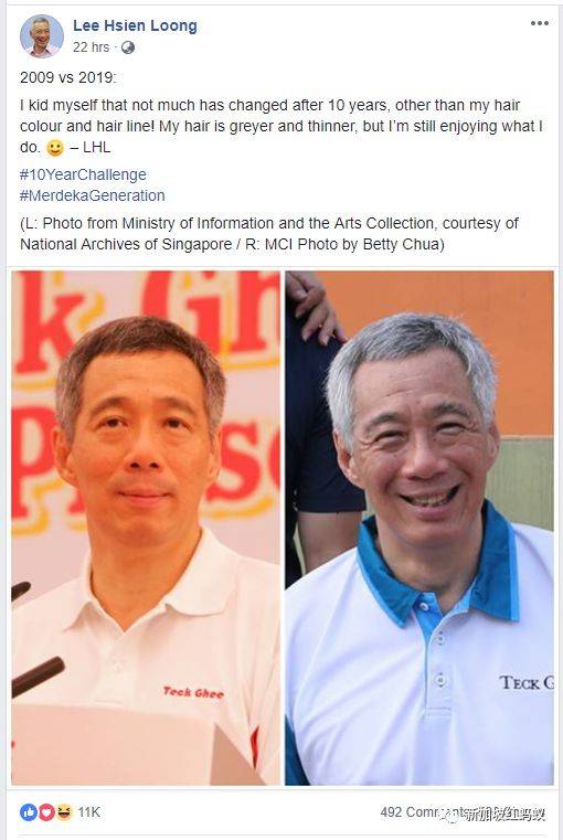 我自我安慰说,10年间好像没多大变化,除了发色和发量有些改变!我的头发花白了,也变少了,但是我依然非常享受自己所做的一切。:) - LHL(李显龙)
