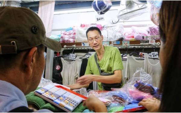 熊宝明在牛车水大厦底层开摊谋生。(温伟中摄)