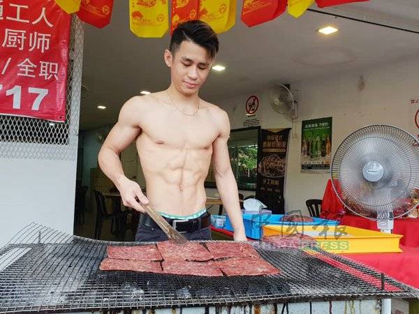 (关丹19日讯)因一时兴起,脱衣露胸肌烧肉干的24岁“小鲜肉”,竟一脱成了网红,获台湾媒体转载报导外,也让他意外接获许多外州肉干订单。