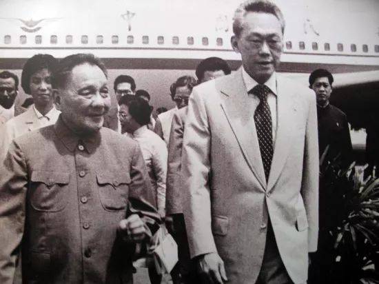 1978年11月12日,李光耀(前左)在新加坡机场迎接到访的时任中国国务院副总理邓小平。(资料图)