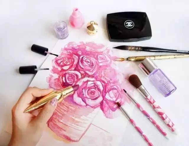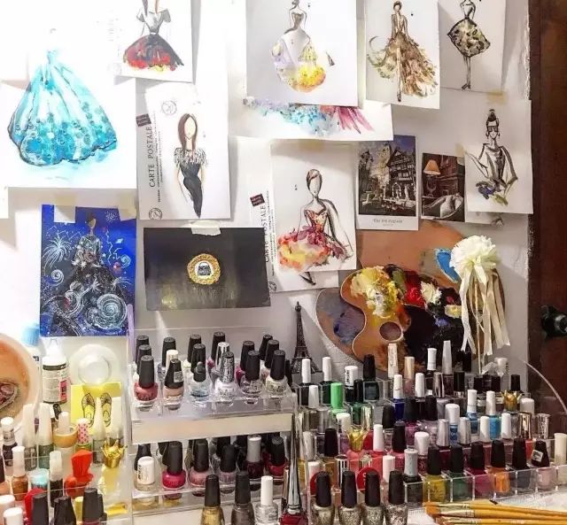 在一次偶然的绘画中,一个水粉颜色没有了,但是旁边刚好是同样颜色的指甲油,她就大胆的用指甲油上色,看看效果。