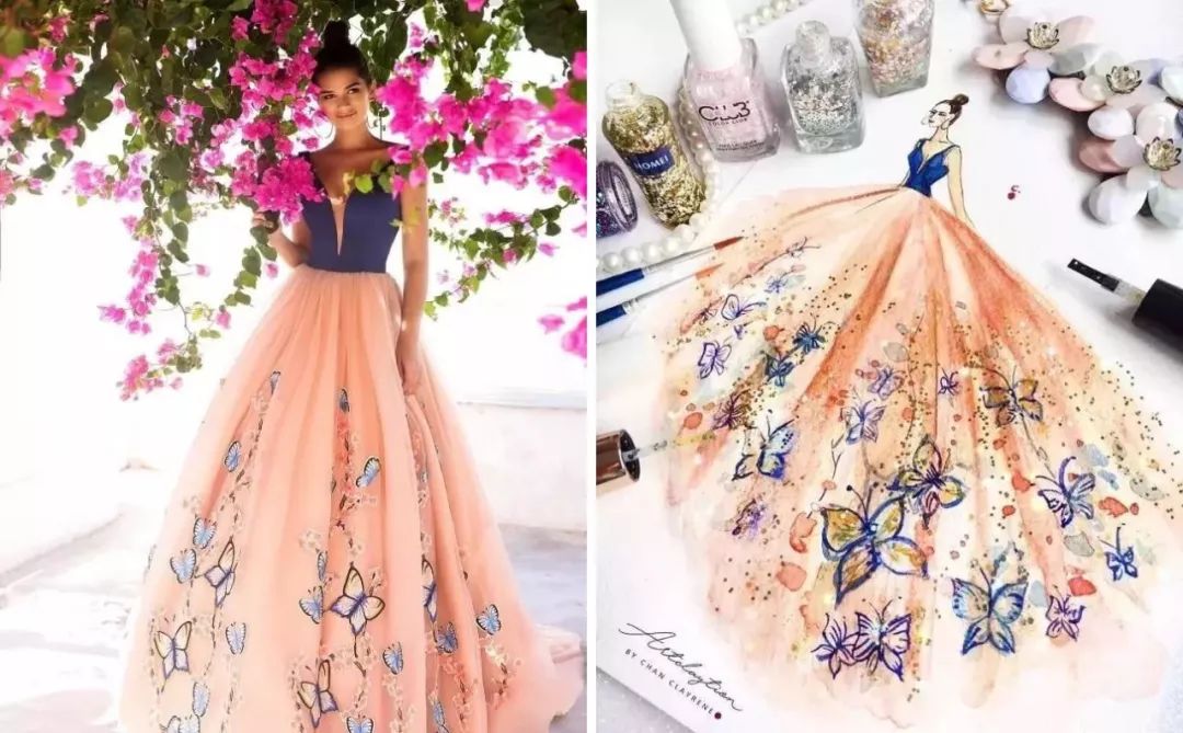 俗话说“兴趣是最好的老师”,Clayrene把兴趣变成艺术,画出了世上最美的裙子的同时,也给自己铺设了最好的职业道路。