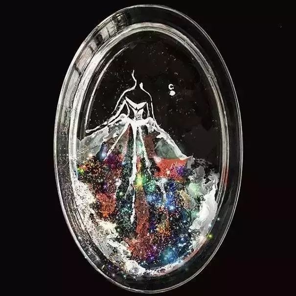 后来她更是巧妙地利用了,指甲油质地较轻、能浮在水面的特点,生动地在水上创造出,更有趣的世界。