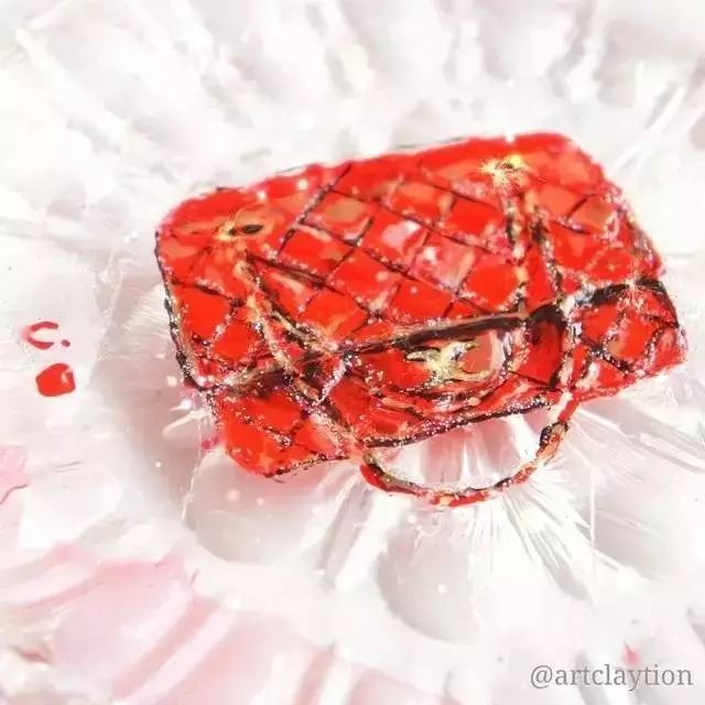 下面两个Chanel的包包,就是她用指甲油在水面上滴出来的。
