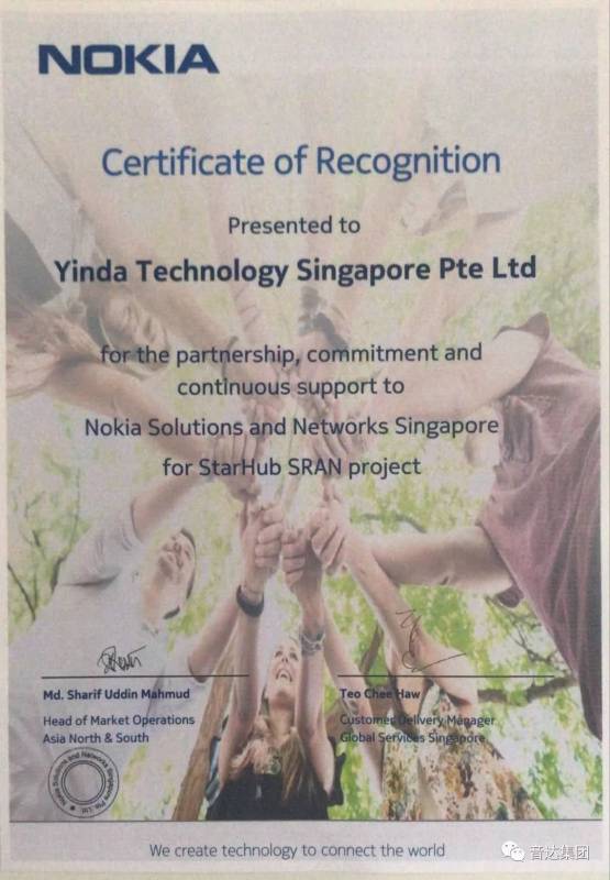 嘉许状写道,嘉许音达新加坡公司与诺基亚在星和SRAN项目中的伙伴关系,对诺基亚的承诺,以及对诺基亚的持续支持。