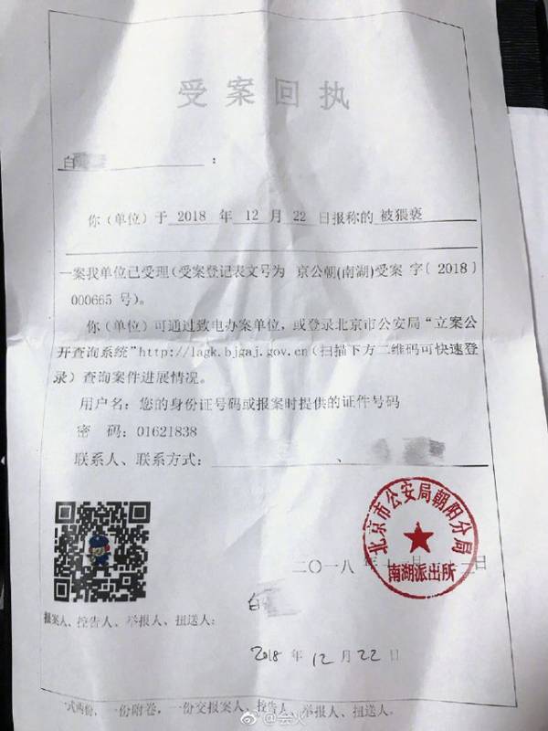 疑似Yumi的报案单流出,内容提到“已受理2018年12月22日的猥亵案”。