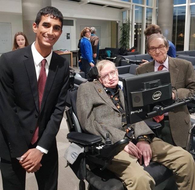 达伦莫汉在牛津大学有机会与多名国家领袖和名人接触,图为他在一年级时与已故英国传奇物理学家霍金的合照。