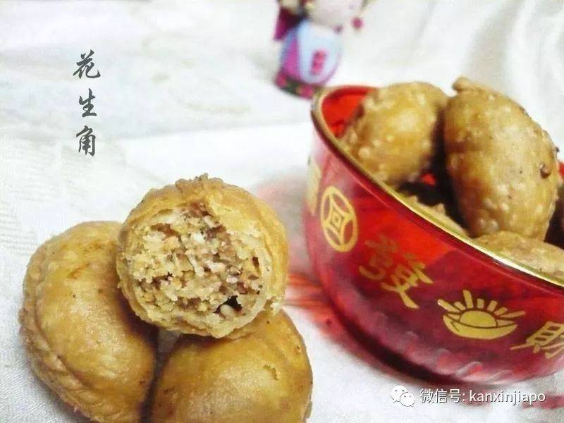 花生角是一种在新加坡很受欢迎的甜品,像咖喱角的外皮,但硬得多,内裹花生碎(像红龟粿),但一般比咖喱角小很多,在节假日的时候,销量尤其好,是新加坡极受欢迎的年货之一。