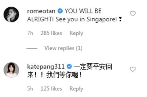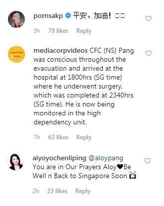 广告演艺同事向云、陈丽贞、李铭顺、陈泓宇、陈罗密欧、黎沸挥、洪俊扬等也在社交媒体留言。李铭顺说:“Aloysius一定会没事的。”庞蕾馨说:“一定要平安回来!我们等你喔!”