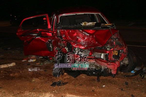 (马六甲21日讯)两车发生碰撞后,除夺走一名华裔年轻男司机性命,另外共乘一车的巫裔夫妇一家四口更阴阳相隔,夫妻两人现场丧生,车内两名年幼儿女受伤。