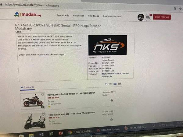 这起诈骗案于本月18日揭发,遭盗用名义的是位于吉隆坡怡保路的NKS Sport Bikers摩哆店。