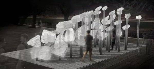 狮城是南洋宝岛,灯光秀上将模拟彰显新加坡特色的各种植物,让人们领略特色南洋风情。如图这个装置是采用白色3D打印花朵,可以让我们一瞥数字化的未来。科技的进步引领人类文明的进步,灯光与3D技术的结合象征着新加坡走在世界潮流的前列。Ng San Son是本地顶尖建筑师,其作品以社区为中心,和具有社会意识而获得多项荣誉,这次与其他5名年轻建筑师合作,希望描绘出建筑行业充满活力的艺术。
