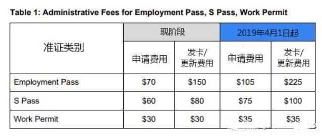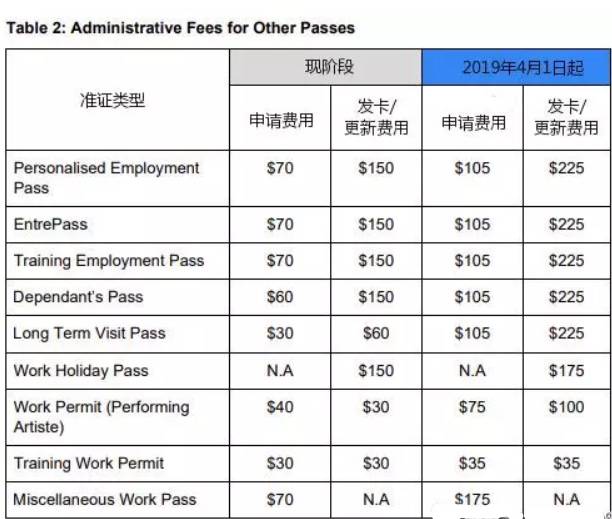 除了上述工作准证,家属准证、长期访问通行证等的办理行政费用也有不同程度的上涨...