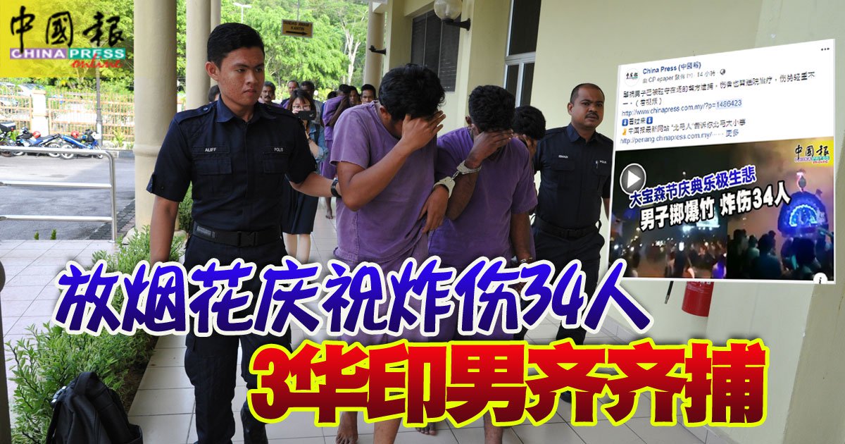 放烟花庆祝炸伤34人 3华印男齐齐捕
