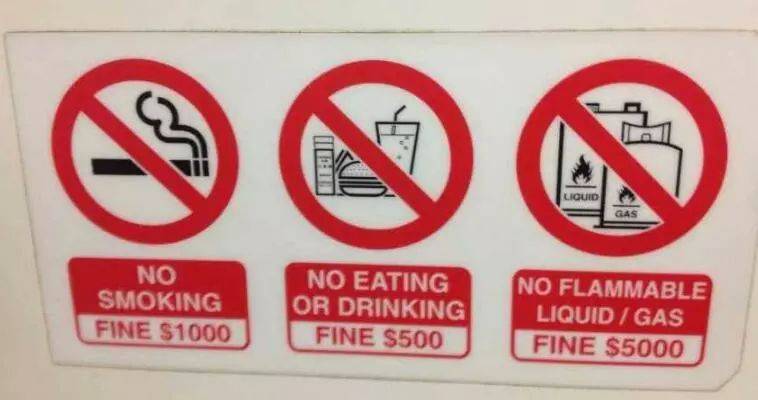 其实,不止在以上三个地方不能抽烟,很多饭店,学校,生活区都是禁烟的。只要有在路上看到禁止吸烟的标志,就一定不能把烟拿出来!否则,下面的处罚措施大家接招吧!